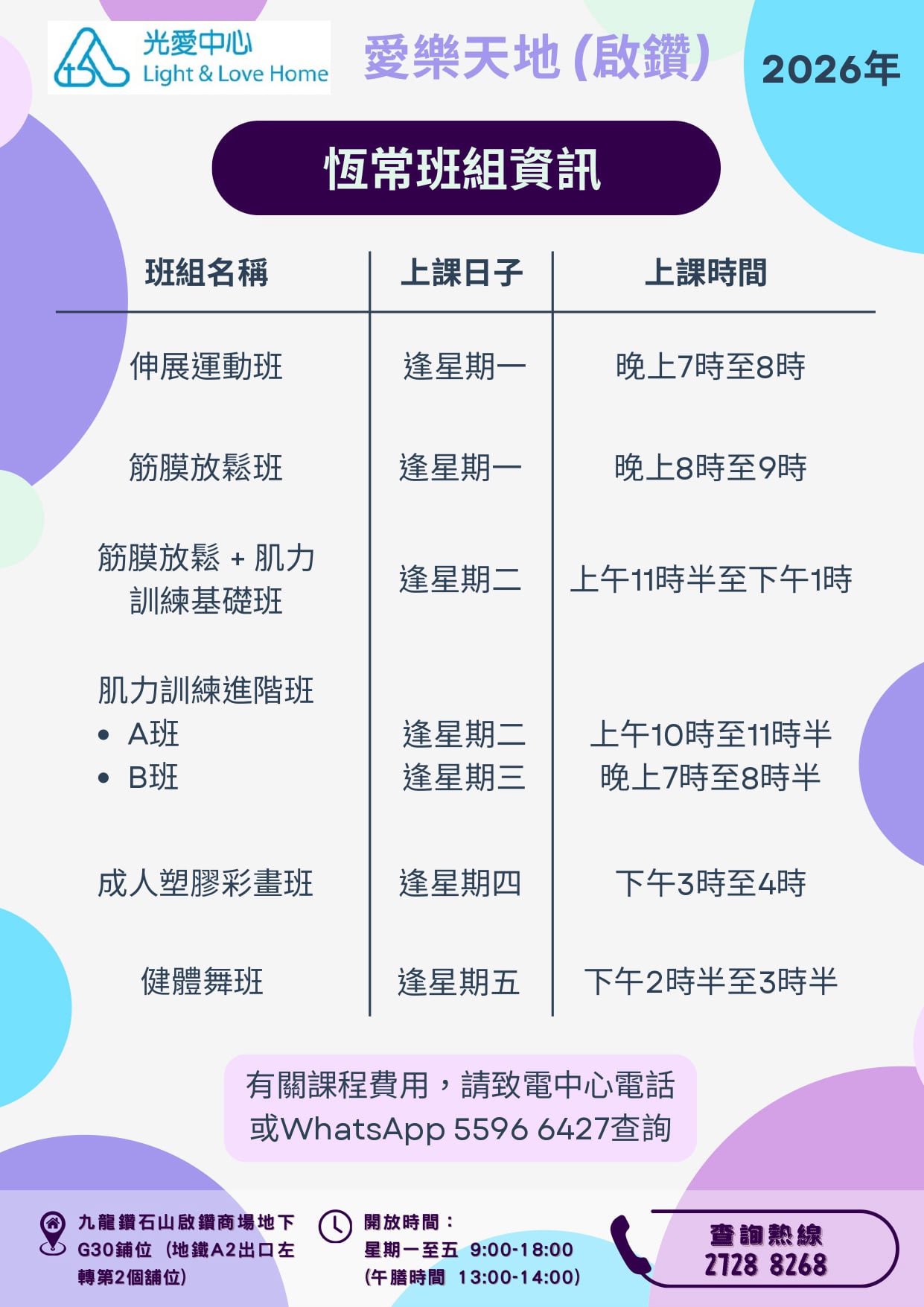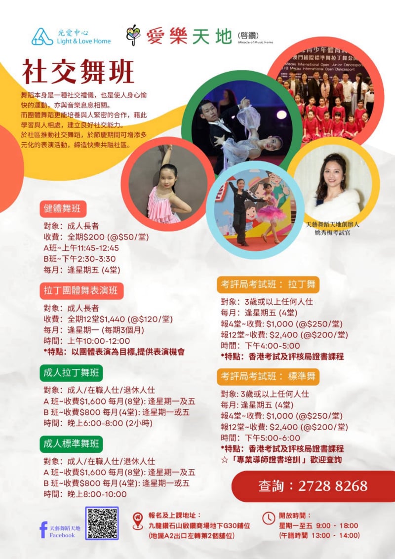 我哋中心仲有好多唔同類型嘅興趣班、活動,家庭👨👩👧👦、兒童 🧸、學生🧑🎓、成人👩🧑、長者👵👴,應有盡有!😁