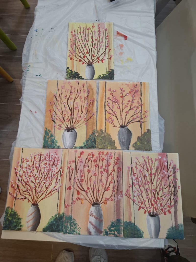 🌈👩🎨👨🎨 學員們在成人塑膠彩畫班裡努力創作,今天終於開心地展示成果 🖼️💖 臉上洋溢著笑容,作品更是色彩繽紛、充滿故事!